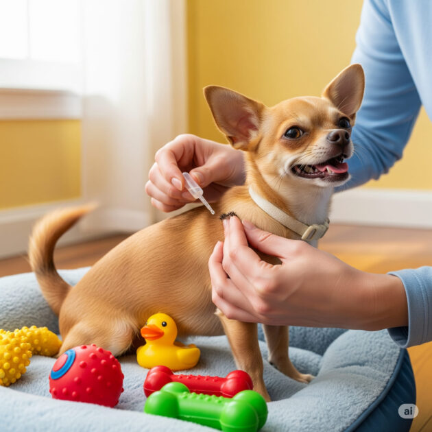 ✔️ Use produtos indicados pelo veterinário, como pipetas, sprays ou coleiras.
